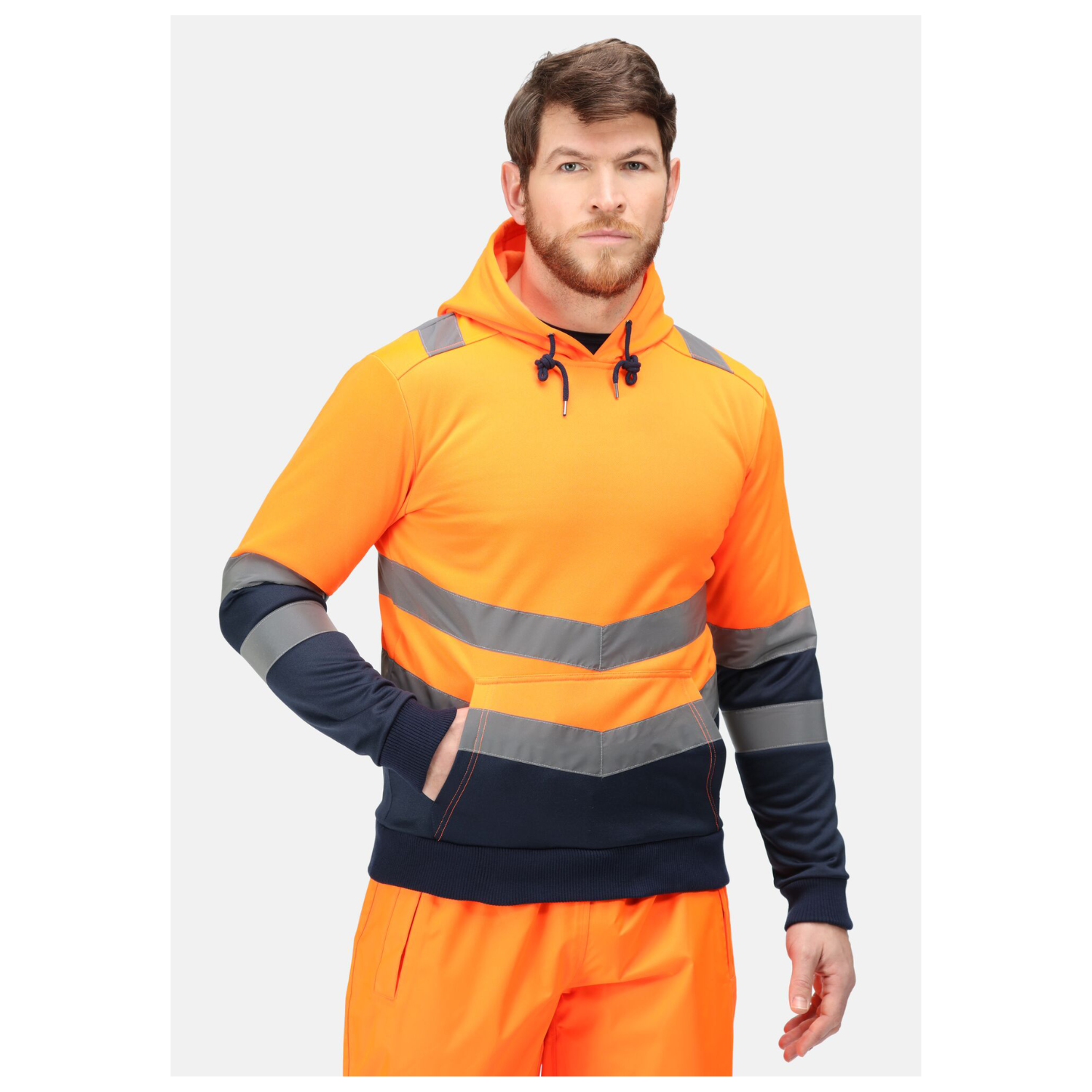 Featuring distinctive angled chevron reflective panels, it enhances visibility while clearly indicating movement and direction in low-light environments. A convenient kangaroo pocket provides warmth for your hands and practical storage for everyday essentials. Combining smart design with reliable performance, the Pro Hi-Vis O/H Hoody is a dependable addition to any workwear kit.